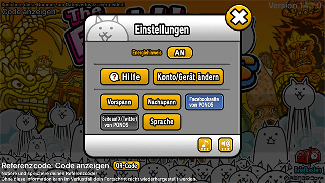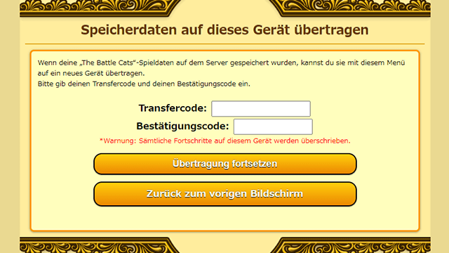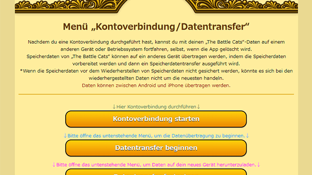 * Daten der englischen Version von The Battle Cats können nicht zu Versionen einer anderen Sprache übertragen werden.