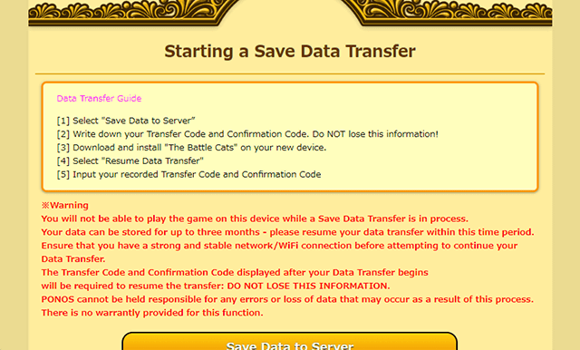 Wähle auf deinem neuen Gerät „Datentransfer fortsetzen“, um The Battle Cats weiterzuspielen.