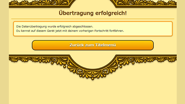 Nachdem der Vorgang abgeschlossen ist, kannst du zum Titelbildschirm zurückkehren.