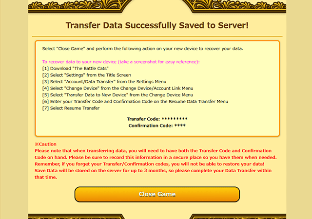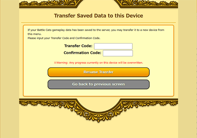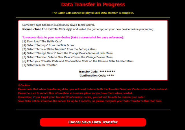 ※ Data from the English version of the Battle Cats cannot be transferred to other language versions of the game.