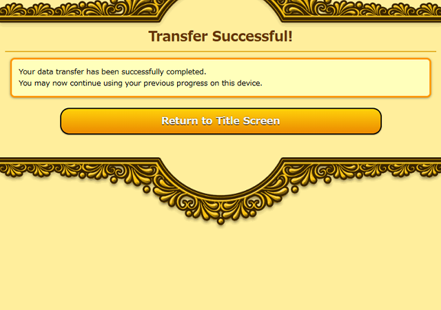 6.After a few moments, the Save Data Transfer will complete. You may return to the title once the process has completed.