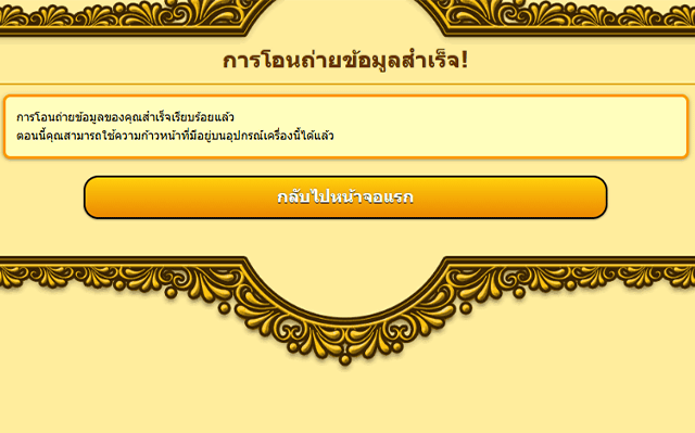 ※ เมื่อการโอนถ่ายไปยังอุปกรณ์ใหม่เสร็จสิ้น ข้อมูลเดิมที่อยู่บนอุปกรณ์อื่นจะเป็นโมฆะและไม่สามารถใช้ได้อีก