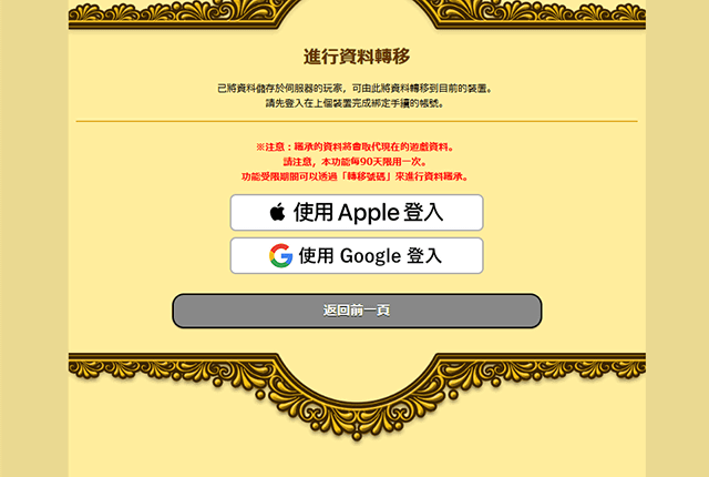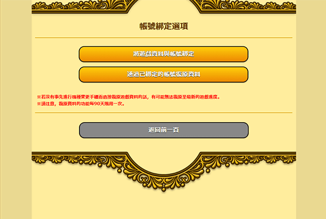 ※本遊戲並沒有能在不同裝置上共用同一帳號資料的功能。