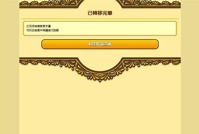 8. 稍微等待之後資料就會繼承完畢。確認完畫面內容後,請選擇「回主標題畫面」。