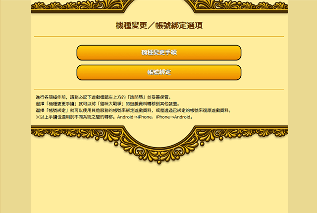 3. 在「機種變更/帳號綁定選項」畫面確認完內容後,選擇「帳號綁定」。