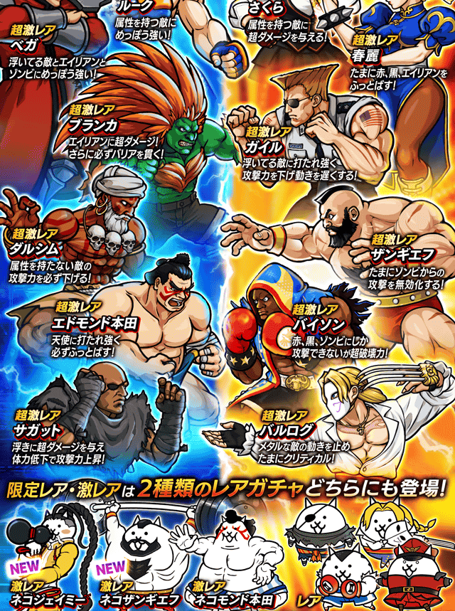※上記の各キャラクターにつきましては、ガチャイベント実施期間中にレアガチャから所定の確率で排出されます。必ずしも超激レアキャラクターが排出されるとは限りませんので、あらかじめご了承ください。