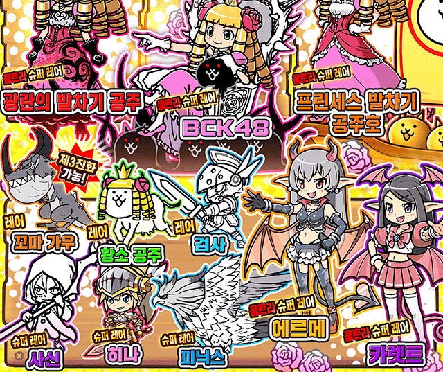 ※상기 뽑기 이벤트의 각 캐릭터는 뽑기 이벤트 실시 기간 중에 레어 뽑기에서 일정 확률로 출현합니다.