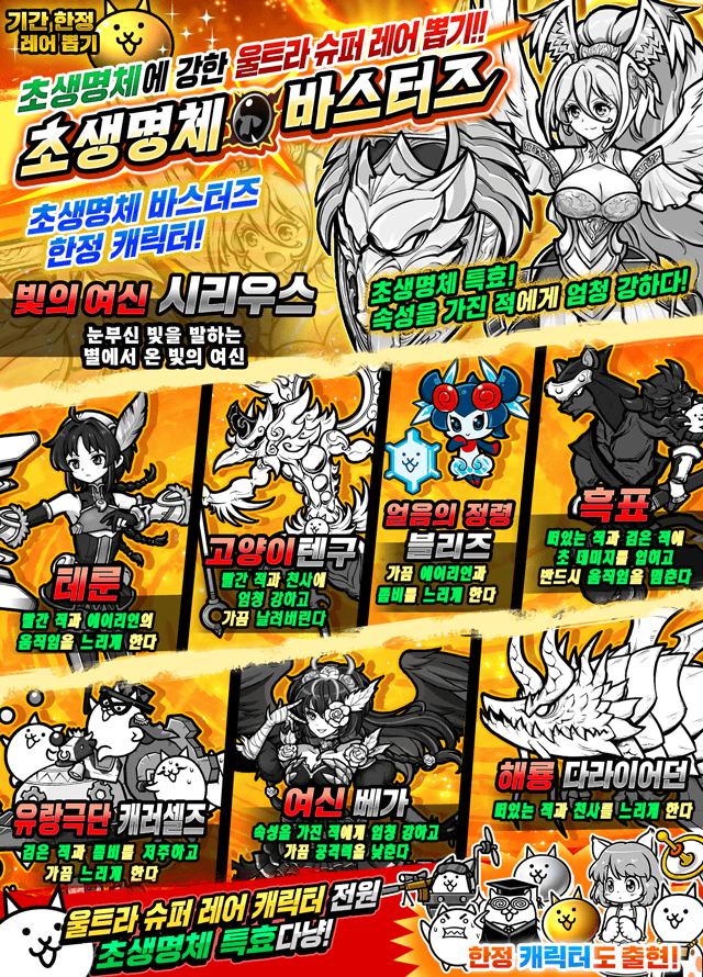 ※상기 뽑기 이벤트의 각 캐릭터는 뽑기 이벤트 실시 기간 중에 레어 뽑기에서 일정 확률로 출현합니다.