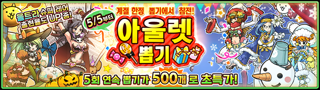 ※상기 뽑기 이벤트의 각 캐릭터는 뽑기 이벤트 실시 기간 중에 레어 뽑기에서 소정의 확률로 출현합니다. 반드시 울트라 슈퍼 레어 캐릭터가 출현하지는 않습니다. 유저분들의 양해 부탁드립니다.