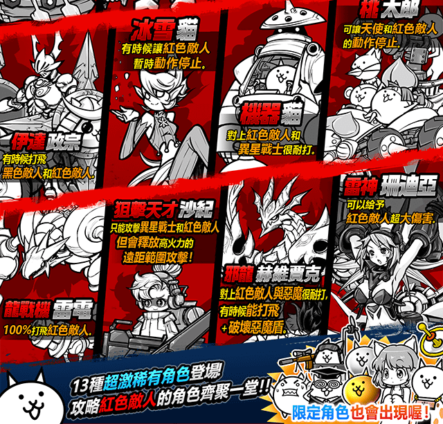 ※紅色字樣的角色為本轉蛋活動的限定角色。▼稀有
