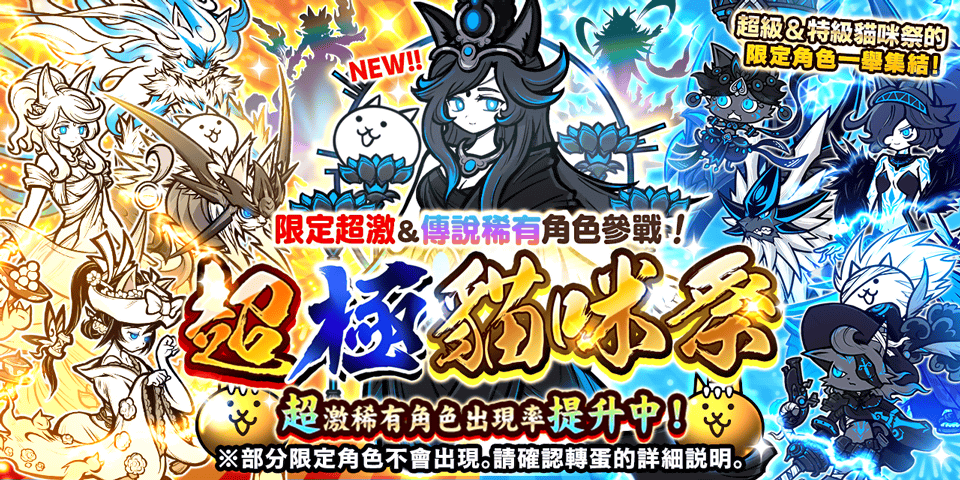 ※「超激稀有角色1隻確定活動」舉辦時,需要使用「連續轉蛋11次」的選項才會確定獲得1隻或以上的超激稀有角色。